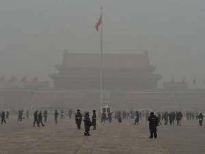 Màn sương khói bao phủ dày đặc khu vực Quảng trường Thiên An Môn. (Nguồn: AFP/TTXVN)